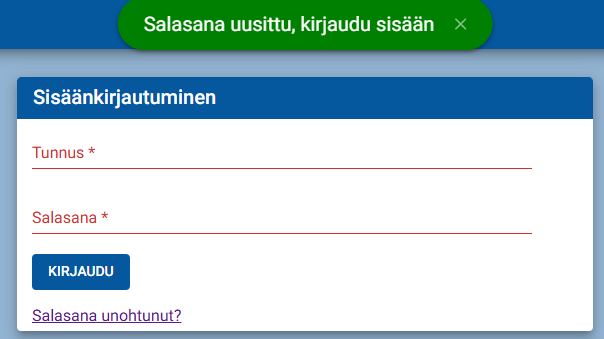Tämän jälkeen voit kirjautua sisään tunnukellasi ja uudella salasanalla