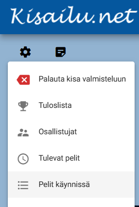 Ja kisan aikana ns. ratasvalikon takana kisan tiedot valikossa