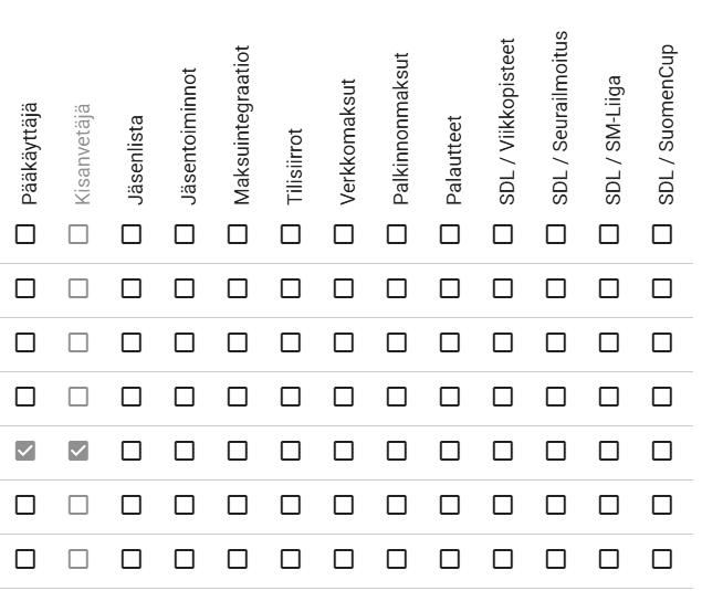 Seuran tulee itse käydä nykyinen ylläpitäjälista läpi ja määrittää Pääkäyttäjät ja muut oikeudet.
